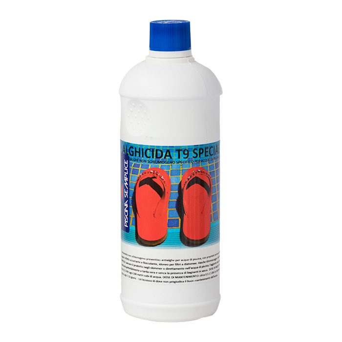 Alghicida non schiumogeno. Prodotto liquido non schiumogeno per contrastare l’insorgere delle alghe in piscina ed evitare quindi fenomeni di acque verdi o torbide. Azione prolungata nel tempo e con proprietà termoresistenti, unite ad un effetto flocculante ed azzurrante. Da utilizzare regolarmente come trattamento di mantenimento. Idoneo per vasche idromassaggio.